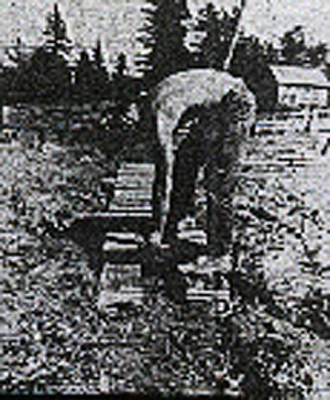 Meanwhile up at the site, the workforce, consisting of young men , women and children , with an assortment of dogs, were busy tearing down the barn (which they considered unsafe), putting up a large scaffolding across the clearing, building a temporary stage and painting signs along the road pointing the way to the festival.